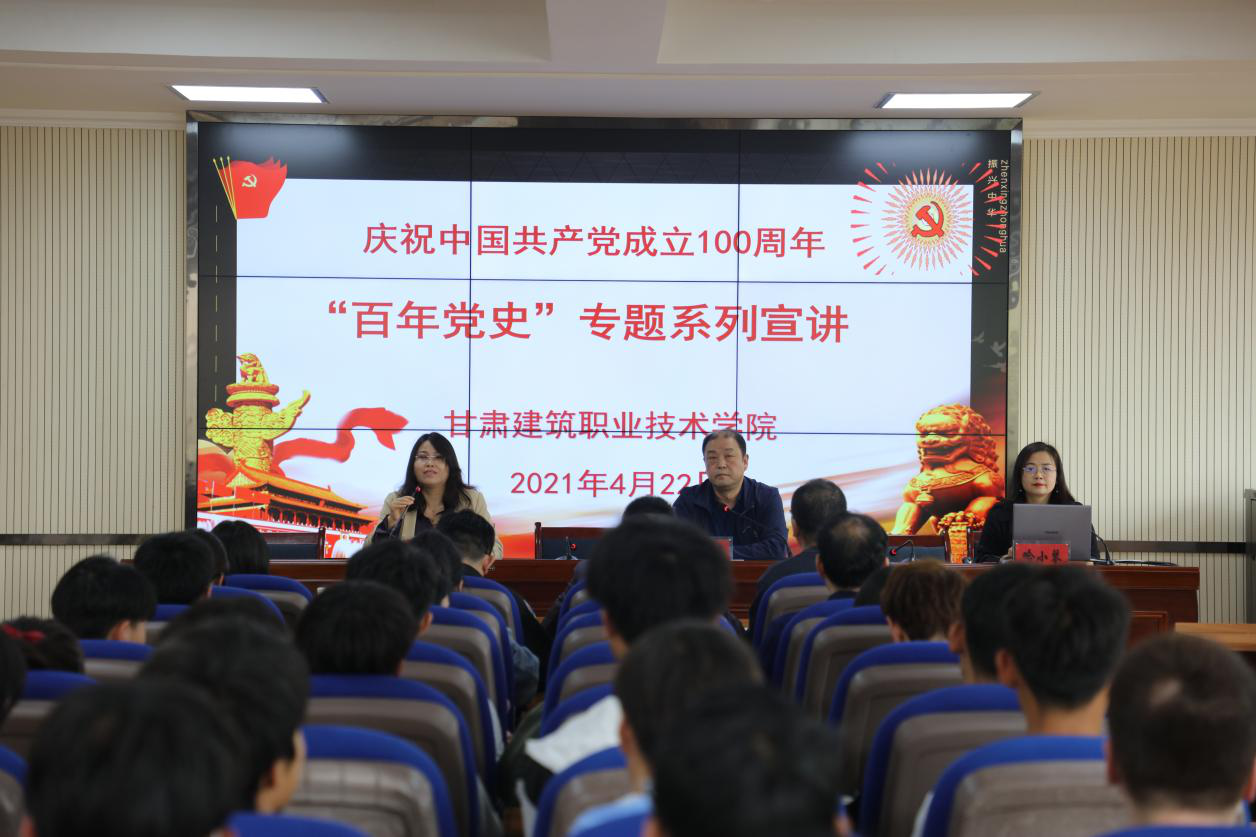 4月22日下午,甘肃建院思政部组织举办了庆祝中国共产党成立100周年“百年党史”专题系列宣讲活动,学院党委副书记王继伟参加活动并致辞。各党支部书记、党员代表、辅导员代表、思政部教师和学生代表参加了此次活动。宣讲活动由思政部主任王瑛主持。