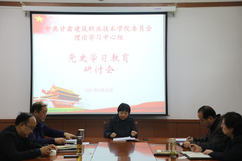 4月26日,甘肃建筑职业技术学院党委理论学习中心组召开第一次党史学习专题研讨会。学院党委书记、院长王娟丽及领导班子成员、中心组全体成员参加研讨会,研讨会由党委副书记王继伟主持。