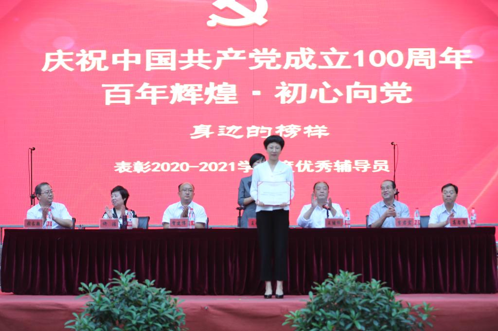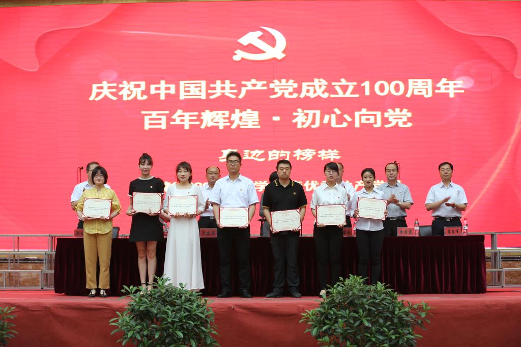 学院领导为获奖的优秀共产党员、优秀辅导员、先进党支部、样板党支部、标杆院系、标杆院系培育对象颁发了荣誉证书及奖牌。