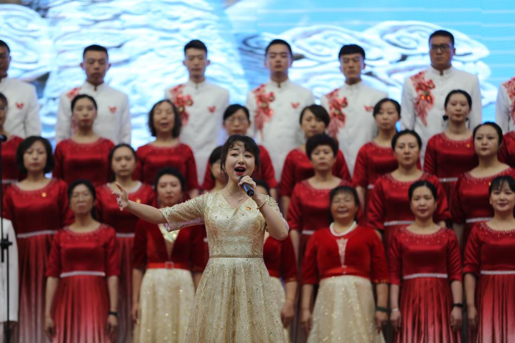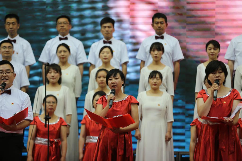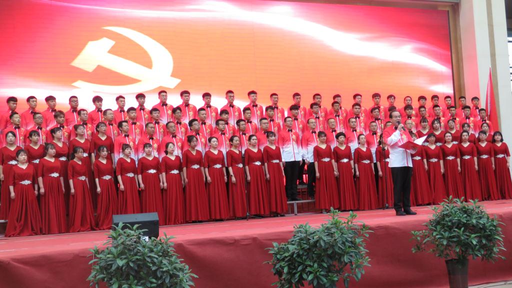 表彰大会结束后,举行了精彩纷呈的“百年辉煌、初心向党”经典诵唱文艺演出活动。首先,由机关第二党支部和建经系党总支带来的诗朗诵《黄河颂》、合唱《保卫黄河》拉开文艺表演的序幕,朗诵者充满激情、豪迈的气势,和大合唱《保卫黄河》演唱,把观众的思绪带入了青纱帐、高梁熟了的恢宏场景。由机关第三党支部和测绘地理信息系党总支表演的《初心如磐,逐梦前行》,合唱《没有共产党就没有新中国》《走向复兴》;机关第五党支部和交通工程系党总支表演的诗朗诵《百年风雨,砥励奋进》、合唱《唱支山歌给党听》;机关第四党支部和建筑系党总支诗朗诵《最好的时代》、合唱《向往》;最后,由机关第一党支部、建筑工程系党总支、环境与市政工程系党总支、基础课部党总支带来了精彩的诗朗诵《梦想照亮中国》,铿锵有力、饱含深情的朗诵将现场的气氛推向了高潮,伴随着合唱《在灿烂阳光下》,整场演出落下了帷幕。文艺演出生动展现了中国共产党百年来带领中国人民进行革命、建设、改革的壮美画卷,热情讴歌党的十八大以来,在以习近平同志为核心的党中央坚强领导下,中国特色社会主义进入新时代,昂首阔步迈向全面建设社会主义现代化国家的新征程。