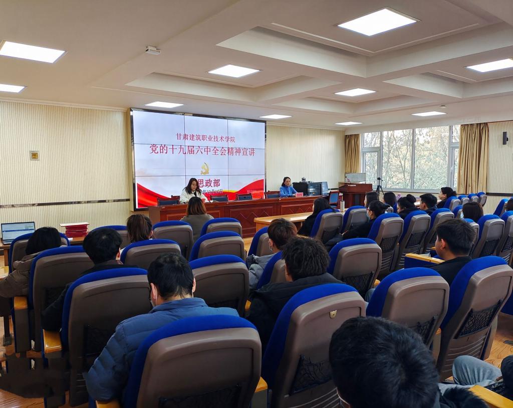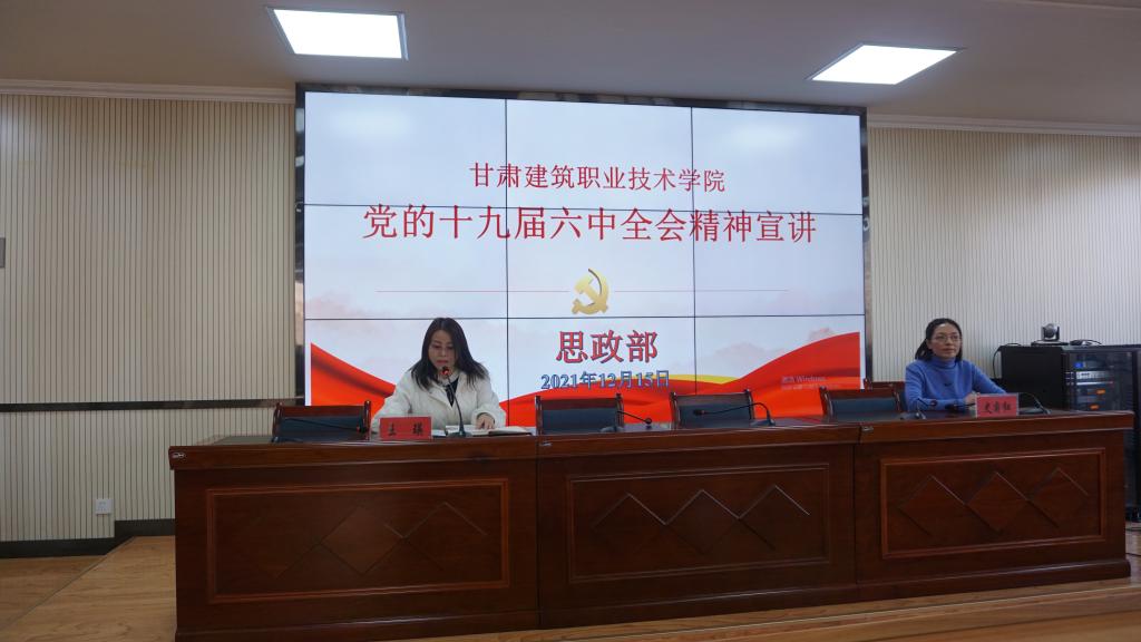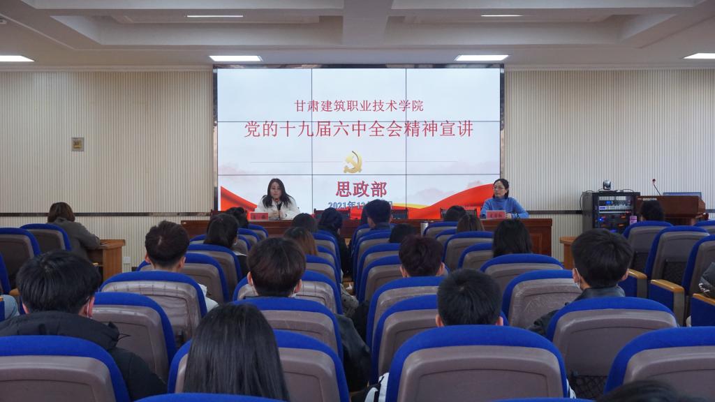 为深入学习贯彻落实十九届六中全会精神,切实将全会精神贯穿学习教育全过程,引导党员干部、全体师生自觉用十九届六中全会精神武装思想、指导实践、推动工作。按照学院党委要求,12月15日下午,思政部开展十九届六中全会精神宣讲活动,活动由思政部部长王瑛主持,思政部骨干教师史菊红围绕《中共中央关于党的百年奋斗重大成就和历史经验的决议》主要内容做汇报,各党支部党总支党员代表、各系辅导员代表、思政部教师、学生代表参加了本次宣讲活动。