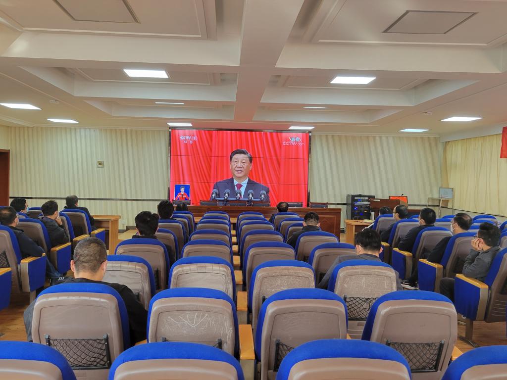 甘肃建筑职业技术学院组织驻校党委班子成员,党员干部在学术报告厅集中观看。学院党委书记、院长王娟丽,党委委员、纪委书记、监察专员贺建伟,党委委员、副院长许洁,党委委员、组织人事处处长、院办主任张长颖,以及部分中层干部集中收看了中国共产党第二十次全国代表大会直播盛况。