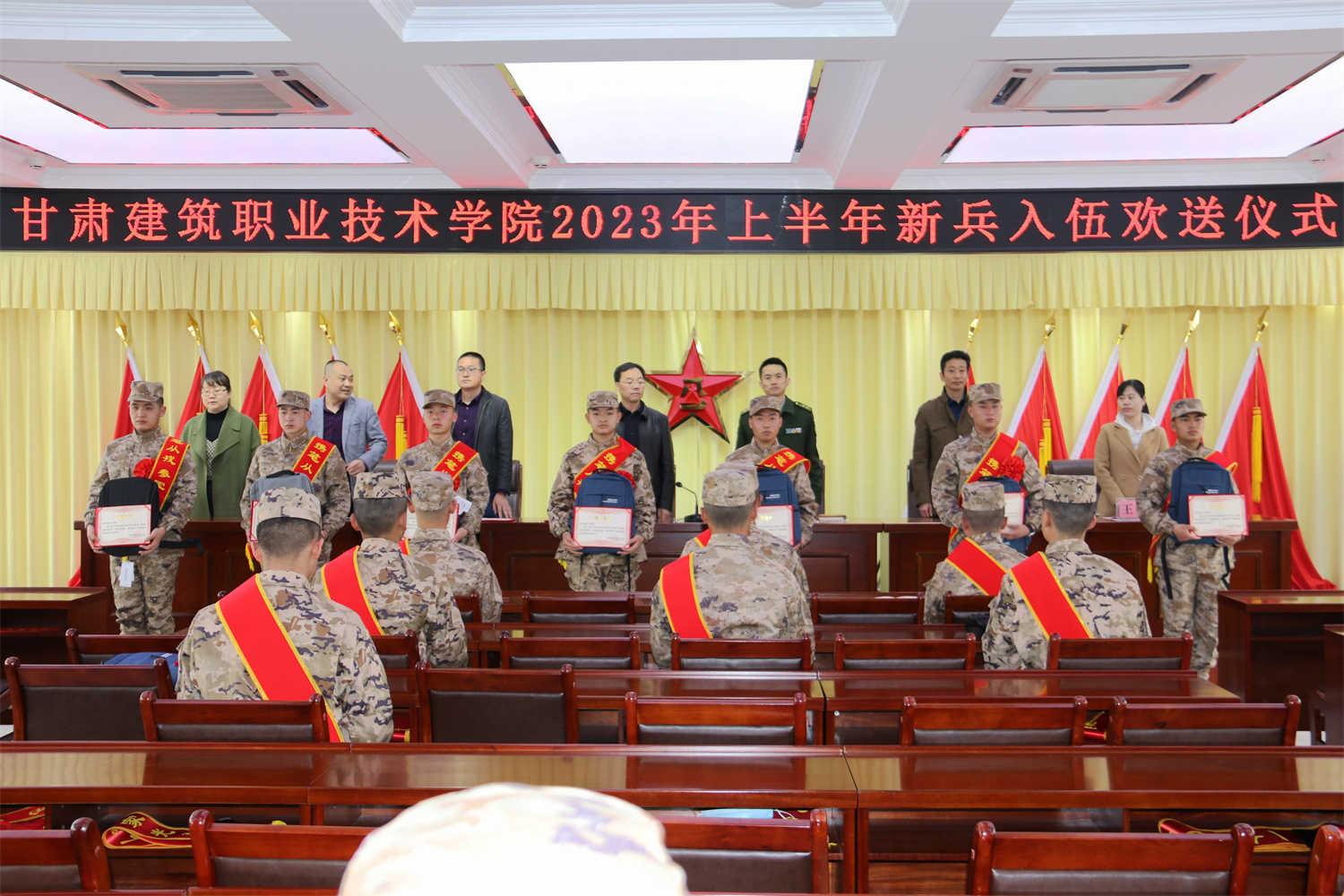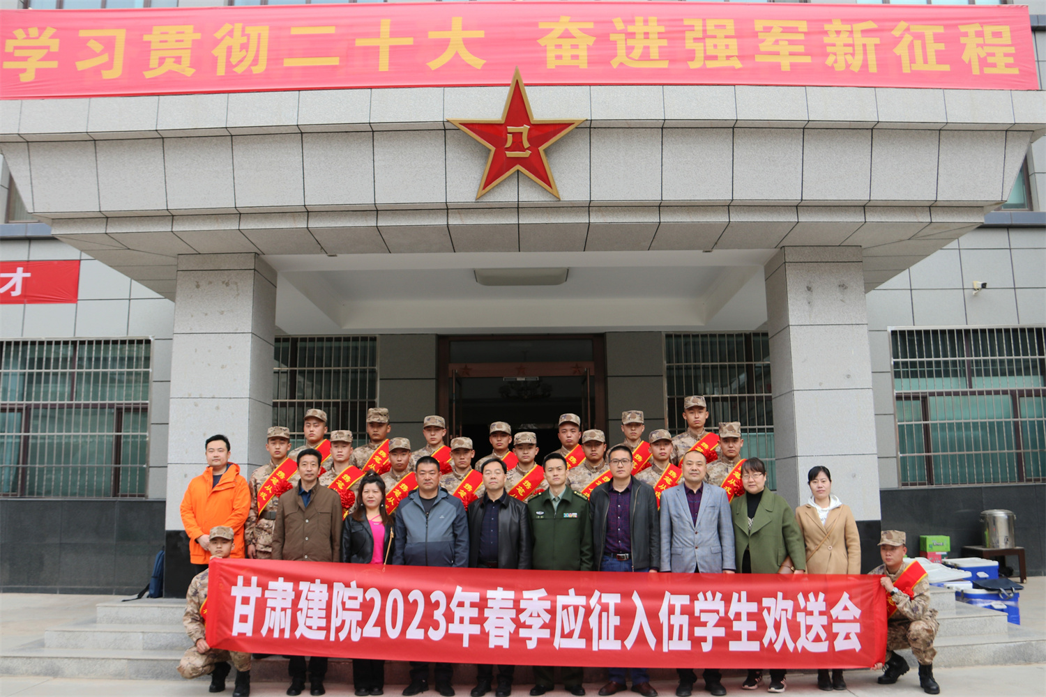 “携笔从戎报国志、青春无悔正当时”,3月15日上午,甘肃建筑职业技术学院2023年春季大学生参军入伍欢送会在七里河武装部举行,学院党委委员、副院长高忠有,七里河武装部副部长李建,学院学生工作科、系书记、辅导员代表及相关工作人员参加了欢送会。会议由学生工作科科长许庆兵主持。