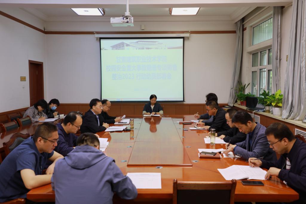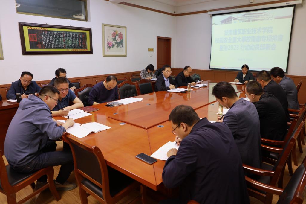 5月17日,甘肃建筑职业技术学院召开校园安全重大事故隐患专项排查整治2023行动动员部署会,党委书记、院长王娟丽,党委委员、纪委书记、监察专员贺建伟,党委委员、副院长高忠有,各系和相关部门负责人参加会议,高忠有主持会议。