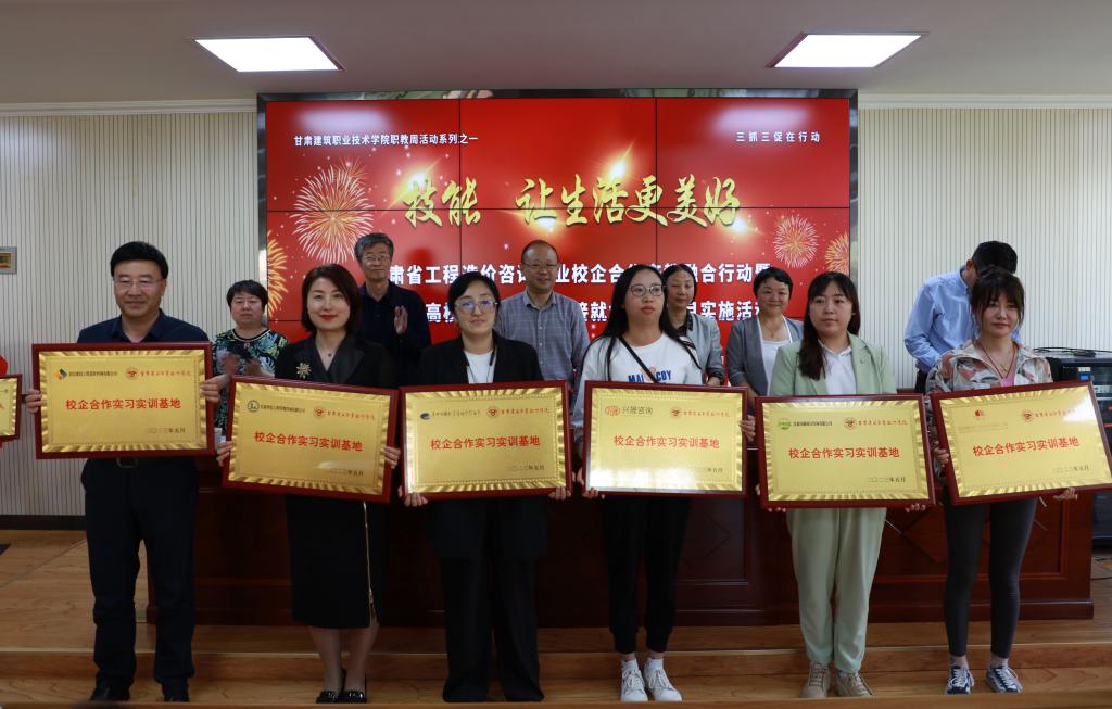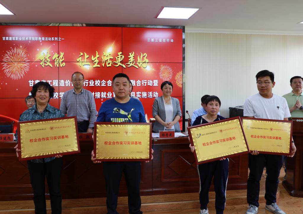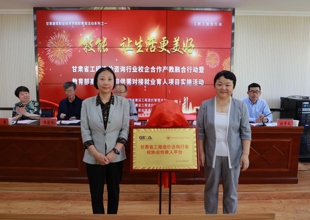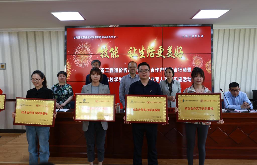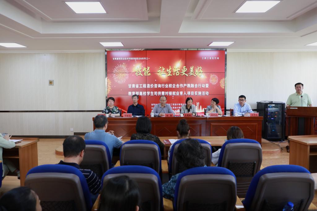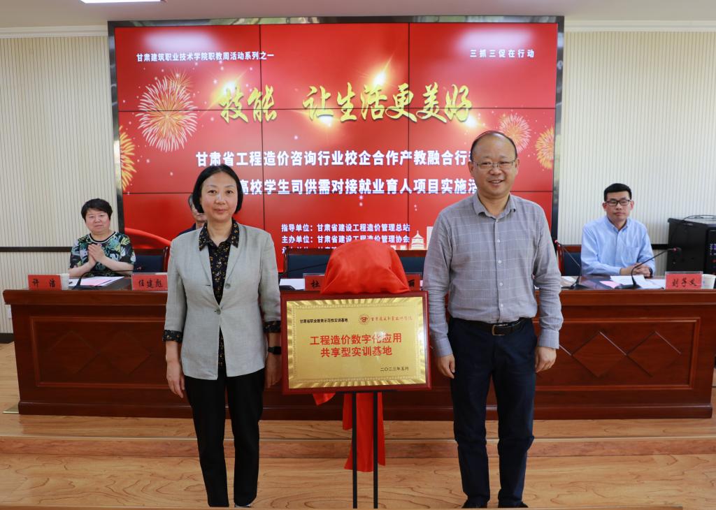 5月19日,甘肃省工程造价咨询行业校企合作产教融合行动暨教育部高校学生司供需对接就业育人项目实施活动在我院举行。甘肃省建设工程造价管理总站站长杜翔,甘肃建筑职业技术学院党委书记、院长王娟丽,学院党委委员、副院长许洁,甘肃省建设工程造价管理协会理事长杨青花,兰州工业学院、兰州资源环境职业技术大学、兰州石化职业技术大学、兰州现代职业学院、兰州信息科技学院以及甘肃省建设工程造价管理协会28个会员单位参加了活动。