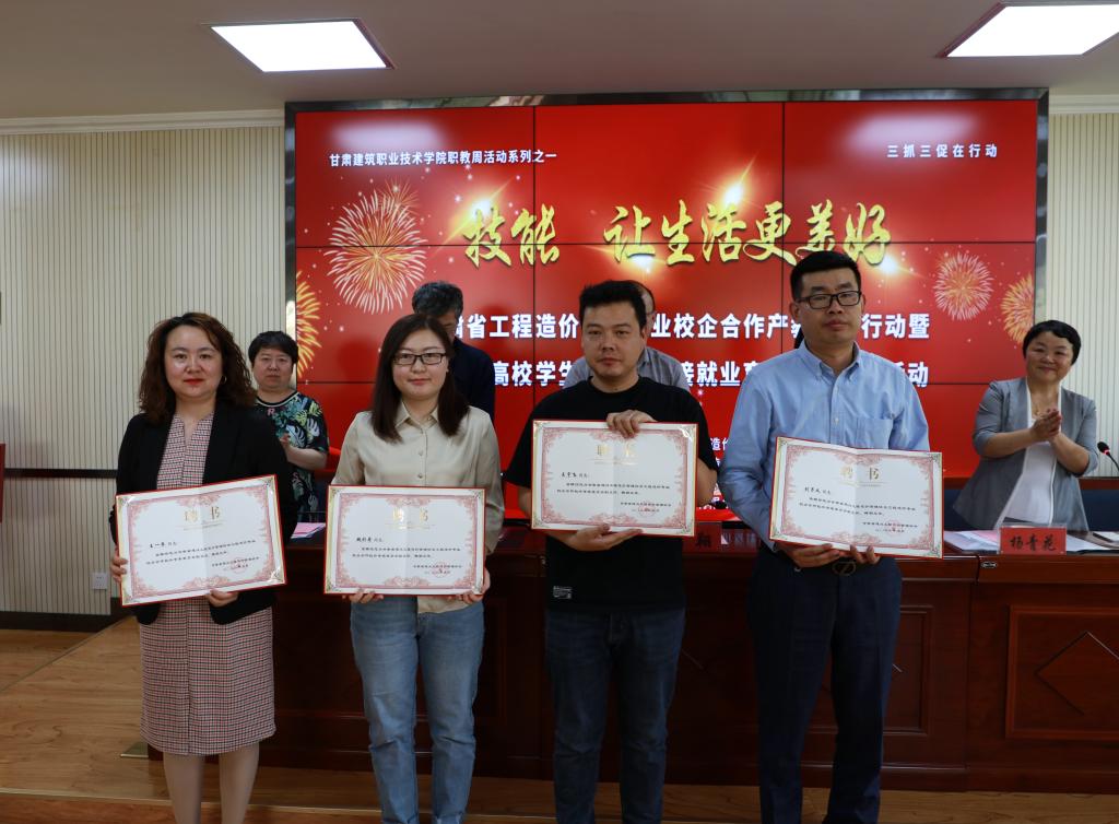 并在甘肃省建设工程造价管理协会的组织下,学院与28家签订了校企合作的造价咨询企业举行了授牌仪式。会上,还成立了工程造价专业校外专家指导委员会,专家为校企合作院校提供专家讲座,参与人才培养方案修订,参加专业人才建设论坛等,并在会议上宣读了专委会名单及管理办法。