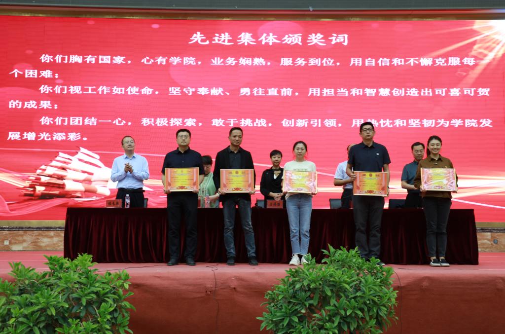 大会在庄严肃穆的《中华人民共和国国歌》声中拉开序幕。学院党委委员、纪委书记、监察专员贺建伟宣读了《甘肃建筑职业技术学院关于表彰2022-2023学年度先进集体、优秀教师、先进教育工作者和优秀辅导员的决定》。学院领导依次为受表彰的“先进集体”、“优秀教师”、“先进教育工作者”以及“优秀辅导员”颁发了证书。