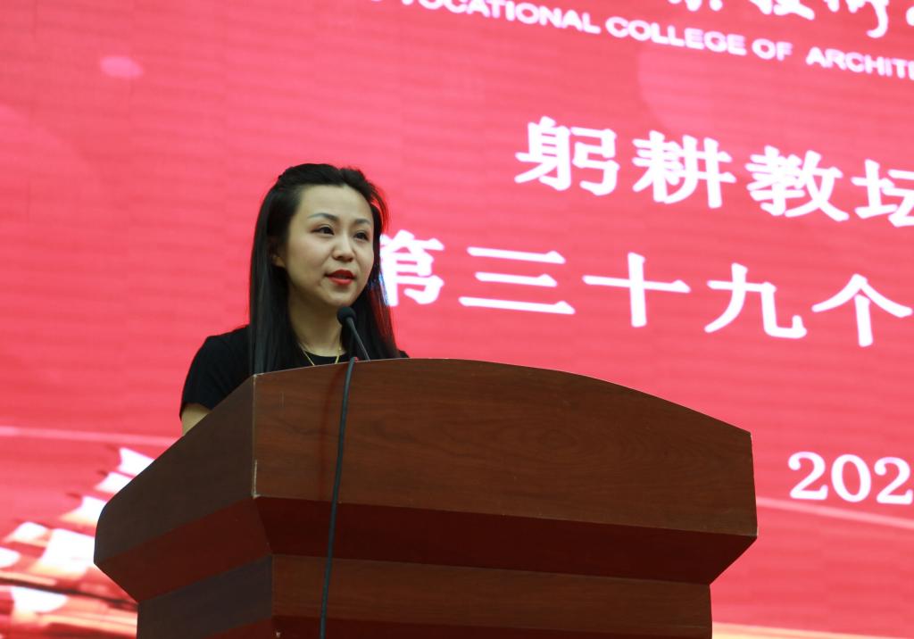 “优秀教师”代表张洁发言时讲到,习近平总书记说过,在全面建设社会主义现代化国家新征程中,职业教育前途广阔、大有可为。作为职业教育工作者,我们要牢牢把握职业教育的重要使命和历史机遇,坚持不懈用习近平新时代中国特色社会主义思想铸魂育人,引导学生树立坚定的理想信念,永远听党话、跟党走,矢志奉献国家和人民。