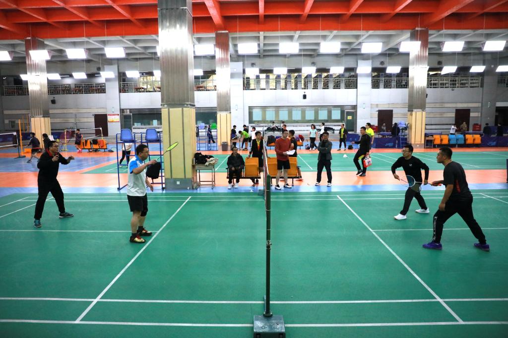 在本次比赛中,共设置了八个项目,包括羽毛球、乒乓球、掷准、跳绳、踢毽子、投飞镖、双扣和掼蛋。其中,踢毽子、跳绳、投飞镖和掷准比赛已于12日结束。