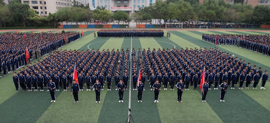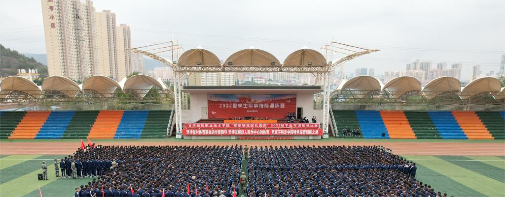 歌声嘹亮唱响青春,心情澎湃放飞梦想,9月22日上午,学院“军歌嘹亮献礼国庆”2022级学生军训歌咏比赛在风雨大操场火热举行。承训部队负责人武威军分区天祝县人武部副部长军训团团长王雄兄同志、学院学生工作处处长军训团政委许庆兵同志出席,军训团全体教官、营教导员、全体连队指导员以及2022级学生共计3700余人参加了比赛。
