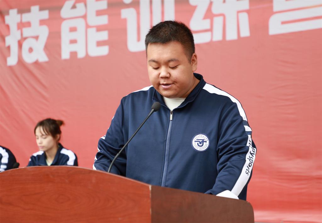 随后,2022级参训学生代表建筑工程系建筑工程技术2班曹旭东同学作了热情洋溢的发言,分享了自己在军训中的感悟与收获,号召同学们继续保持在军训中养成的良好行为习惯,在未来的人生中继续努力创新,追求卓越。