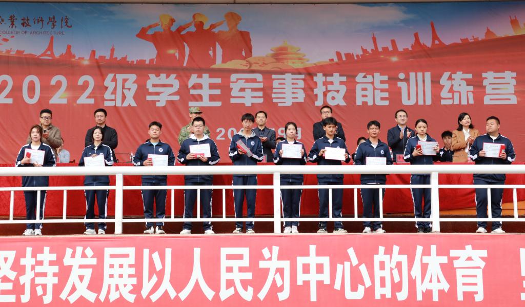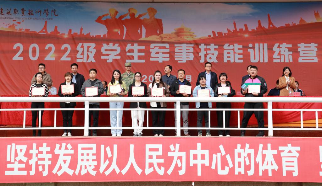 表演结束后,教务处处长高建兴宣读了《甘肃建筑职业技术学院关于表彰2022级学生军训先进集体及个人的决定》,主席台领导为先进集体和先进个人颁发了荣誉证书。
