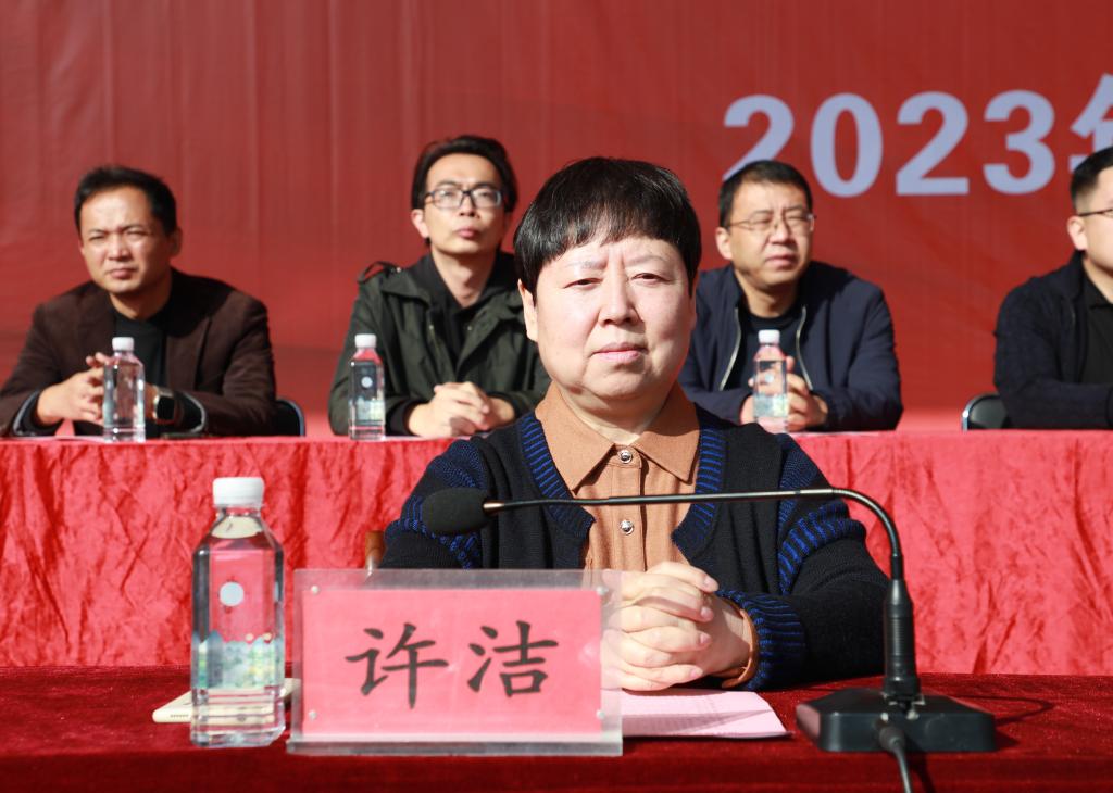 党委委员、副院长许洁宣读了《关于成立甘肃建筑职业技术学院2023级新生军训团组编的决定》。王娟丽同志为军训团授旗。