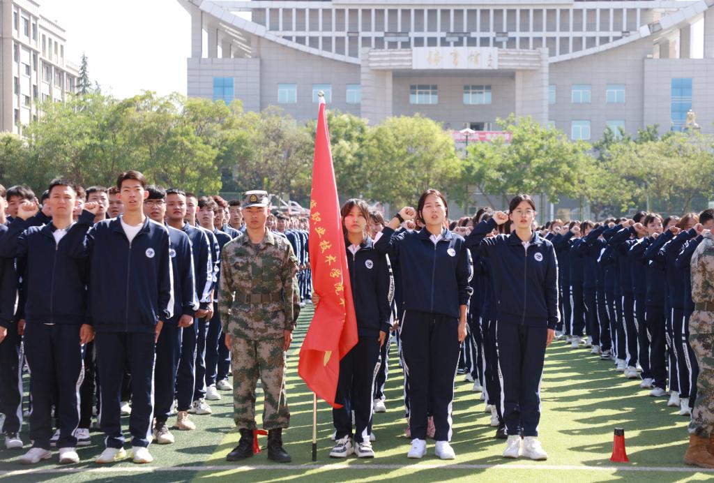 王娟丽同志为军训团授旗。全体参训同学向军训团团旗宣誓。由此,甘肃建筑职业技术学院2022级学生军训拉开帷幕。