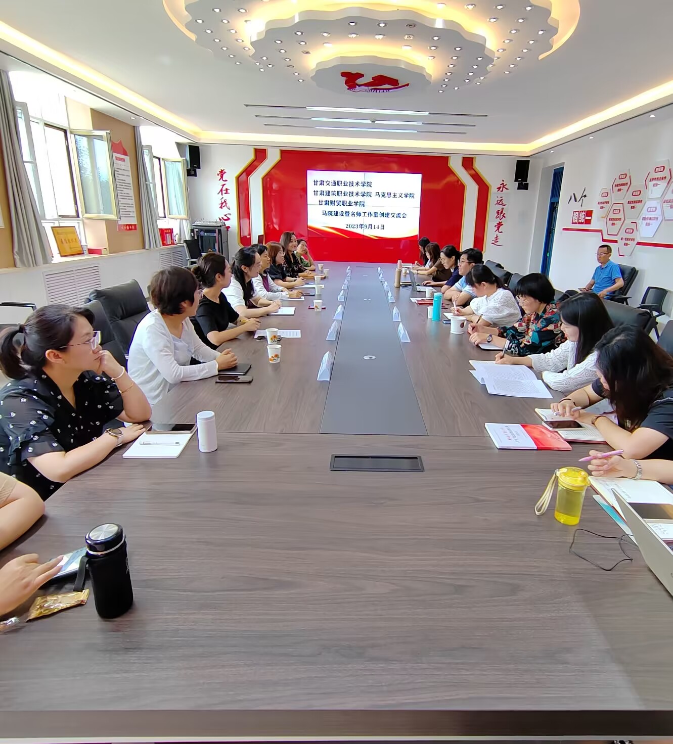 此行还参观了甘肃交通职业技术学院马克思主义学院活动室、名师工作和文化墙建设,甘肃财贸职业学院马克思主义学院VR思政虚拟体验实训室和思政展览馆。通过参观交流活动,学习了兄弟院校马院内涵式发展举措,同时加大财力、物力、人力的投入力度,建设发展软硬件建设双条腿走路,一心一意谋发展,聚精会神搞建设,努力打造职业院校思政育人的新高地。