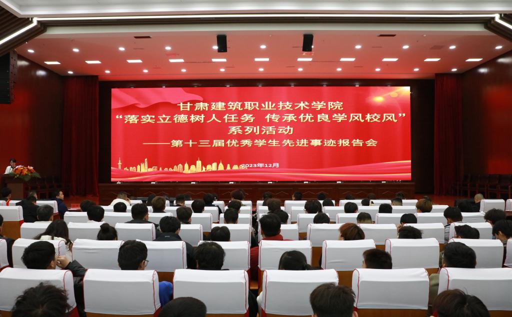 高忠有作总结讲话时说到,本次优秀学生先进事迹报告会,旨在贯彻落实立德树人根本任务,加强和改进大学生思想政治教育,发挥优秀学生的模范带头作用,引领广大学生刻苦学习、团结自律,形成比学争先的良好校园氛围。他对六位优秀学生代表在专业技能学习、社会实践、校园生活以及各类比赛中所取得的优异成绩表示了肯定,同时,为更好的树立大学生身边的榜样,引导广大青年学生成长成才,他提出了三点期望,一是志存高远,脚踏实地,要坚定理想信念,厚植爱国情怀,以阳光乐观的心态面对学习和生活;二是明确目标,放飞梦想,要做好个人学业生涯规划,时刻牢记时代赋予的责任,勇敢担负建筑人的使命;三是知行合一,全面发展,要在扎实学习文化知识的同时,秉承校风校训、积极参加实践,全面提高自身的综合素质,努力把自己锤炼成为德智体美劳全面发展的社会主义建设者和接班人。