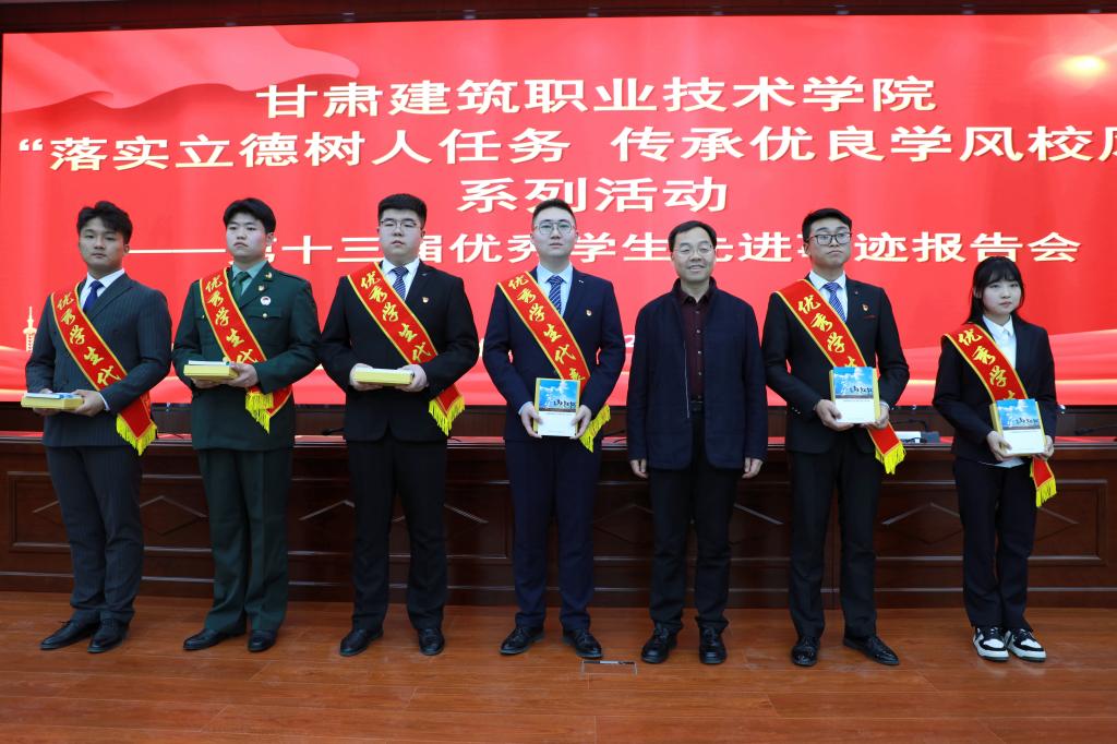 会上,学院优秀学生代表,交通工程系2021级汽车制造与试验技术1班徐亨淳、建筑工程系2021级建筑工程技术6班刘佰稳、建筑工程系2021级建筑工程技术10班田永红、建筑系2021级建筑室内设计4班王静、测绘地理信息系2022级无人机应用技术1班柳治鑫、建筑系2021级园林工程技术1班王熠,分别作题为《用辛勤装扮出绚烂的青春色彩》《心怀朗月,奋楫图南》《青衿之志,履践致远》《天道酬勤,笨鸟先飞》《读万卷书,行万里路》《将青春融进祖国的山河》的报告。