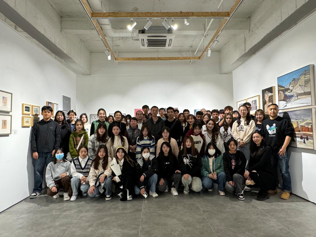 此次“入画——艺术与空间的 N+种可能”展览系列活动的主题学术交流会在榕·美术馆举办。会议由甘肃建筑职业技术学院建筑系党总支书记蔡萍与参展艺术家彭剑共同主持,学院党委委员、副院长李君宏、许洁及建筑系部分师生参加。