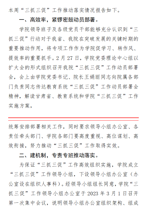 【三抓三促】甘肃建筑职业技术学院“三抓三促”工作周报(第一期.20230301)