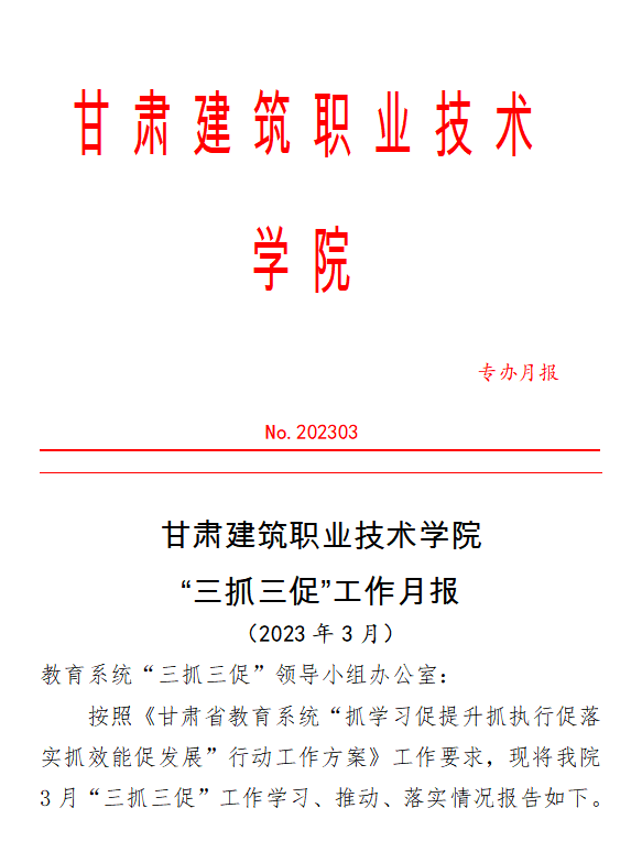 【三抓三促】甘肃建筑职业技术学院“三抓三促“工作月报(2023.03)