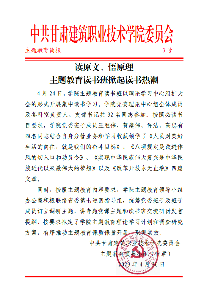 【三抓三促】读原文、悟原理主题教育读书班掀起读书热潮--简报三期(4.26)